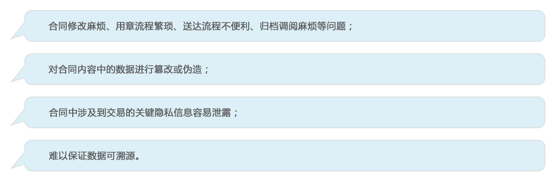 将区块链技术应用于电子合同存证领域,结合区块链数据不可删除和篡改的特性,在链上完成合同存证,为存证的用户提供数据保全和溯源的功能,解决传统合同存证业务中安全性差、真实有效性低等痛点问题。在涉及电子合同纠纷时,数据信息可以从区块链取证,以各运维的节点的数据为依据出具相应的审计报告、司法鉴定意见书和公证函,提高电子数据取证效率。