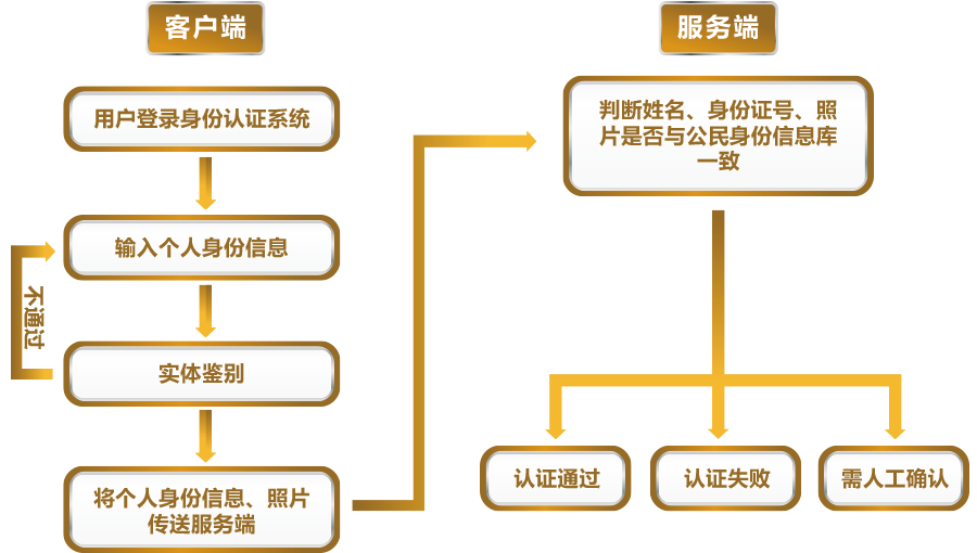 面部识别系统(FRS)FRS采用非接触类生物识别技术、图像识别与比对技术,完成公民身份的审核和鉴别,实现“人证一致”的高强度审核。终端设备不需要和使用者直接接触便可采集到人脸、眼纹等身份特征信息,通过人脸识别、眼纹识别等多重识别,再将采集到的基本身份信息与公民身份信息库进行比对鉴别真伪,完成公民身份的审核和鉴别。