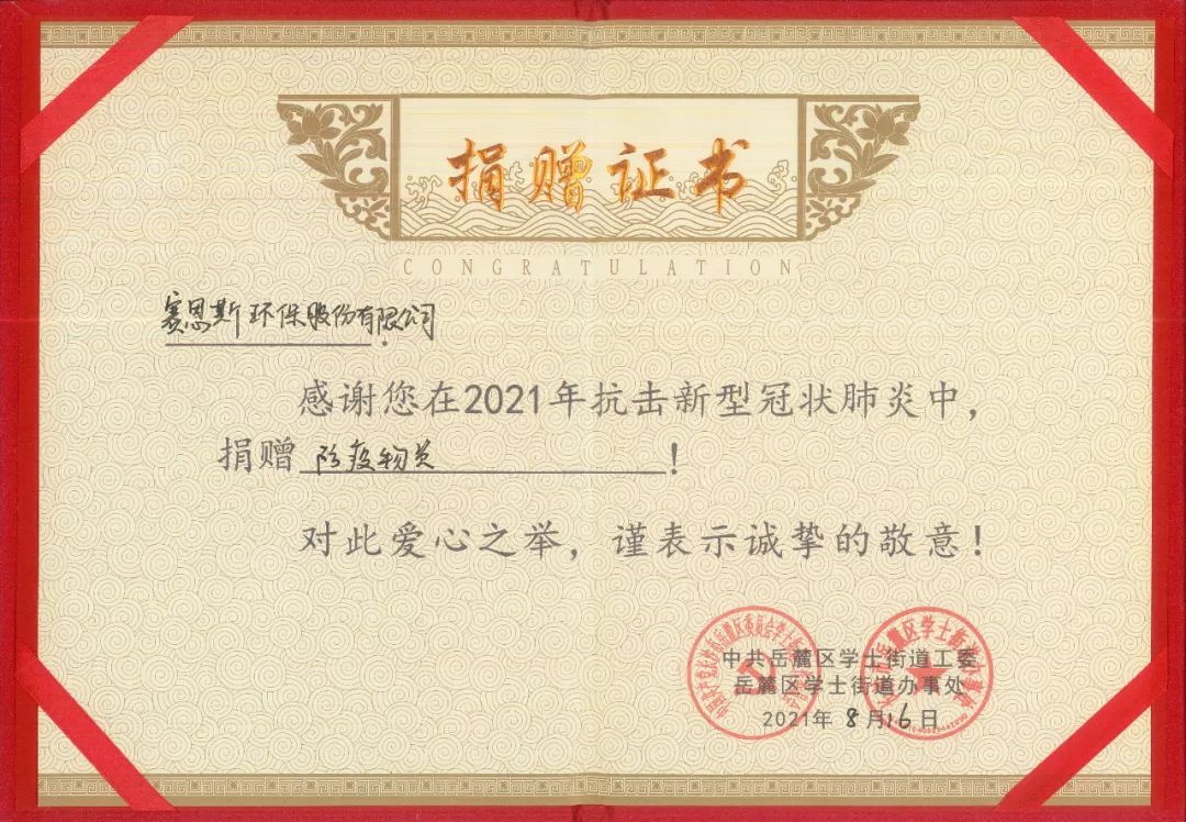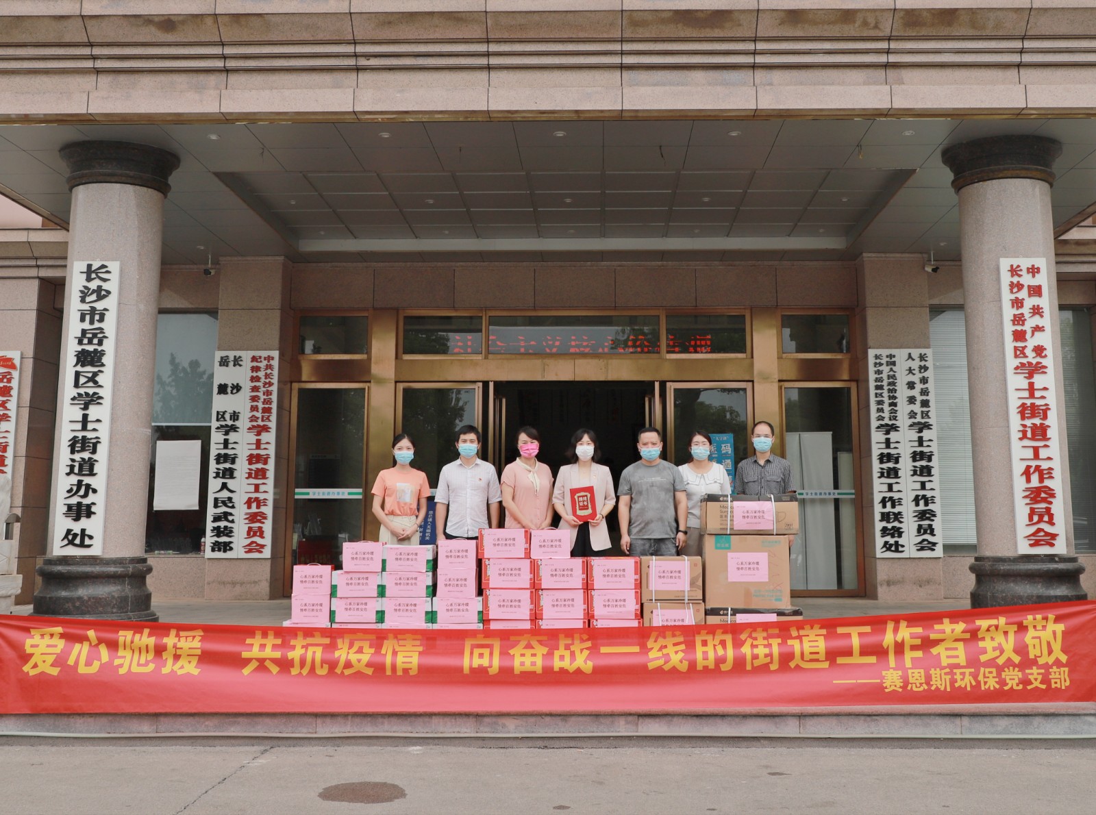 爱心驰援,共抗疫情。2021年8月16日上午,赛恩斯环保党支部前往长沙市岳麓区学士街道,为疫情防控工作人员送上慰问物资,向在烈日下奋斗在一线的街道工作者表达真诚的问候与诚挚的敬意。